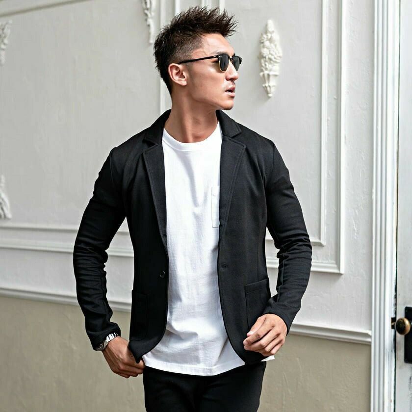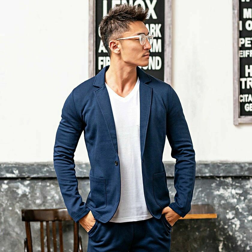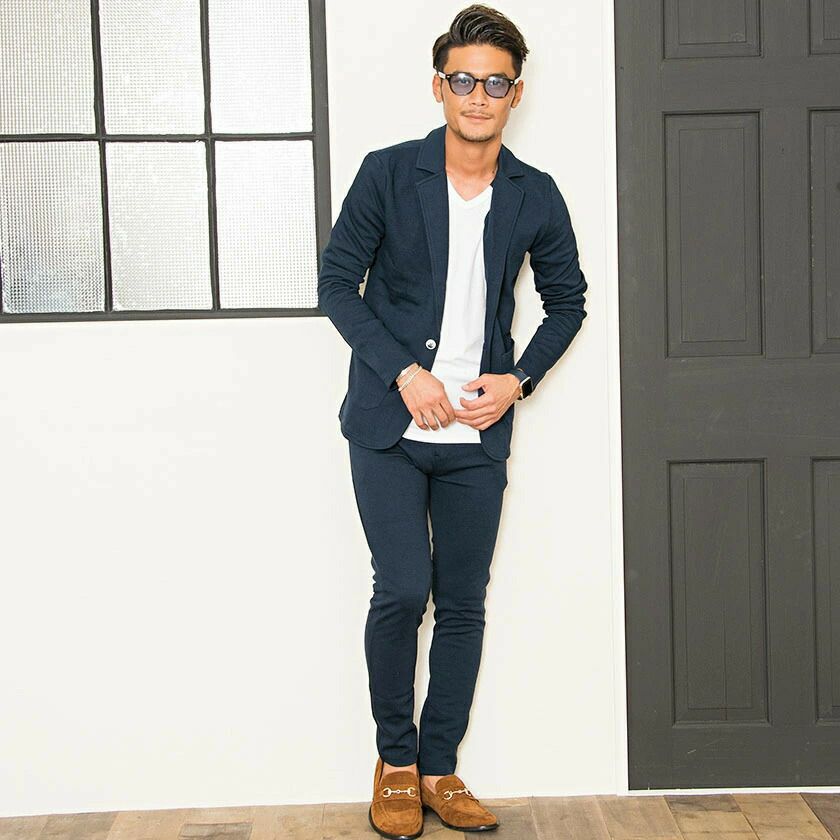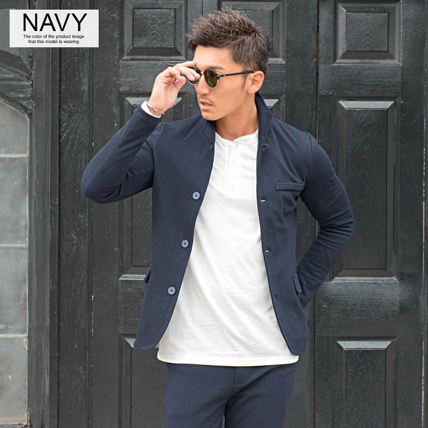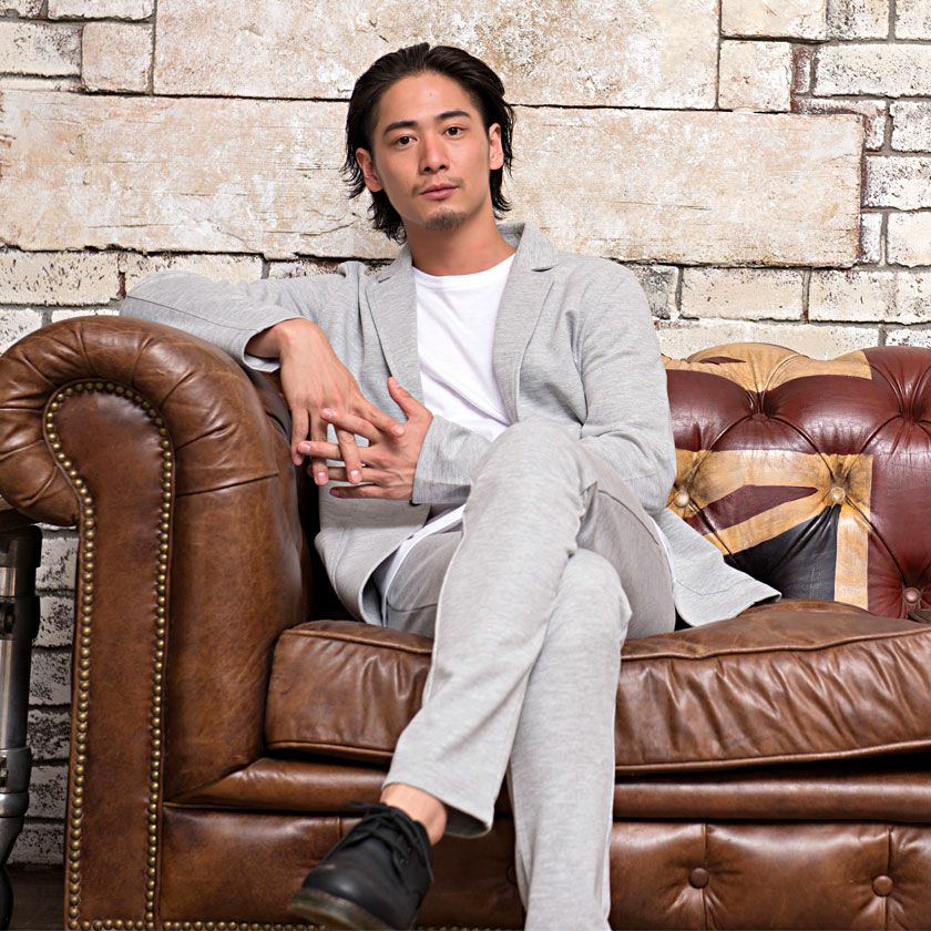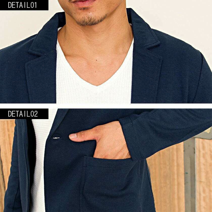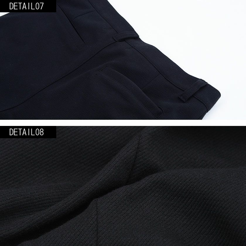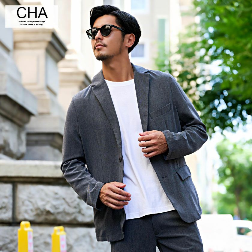 ジャケットとパンツと半袖Tシャツの3点セット。インナーの半袖Tシャツは柔らかなサーマル素材を使用したクルーネックタイプとスタイリッシュなテレコ素材を使用したVネックの2タイプ。