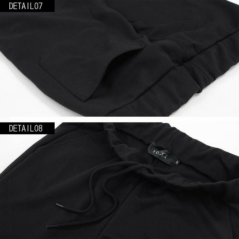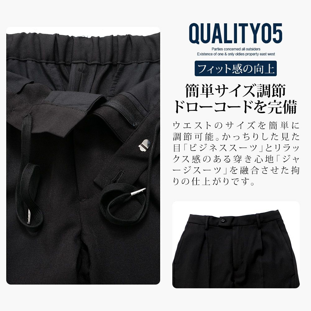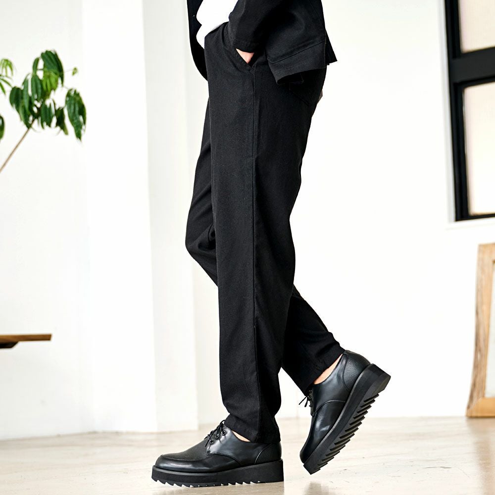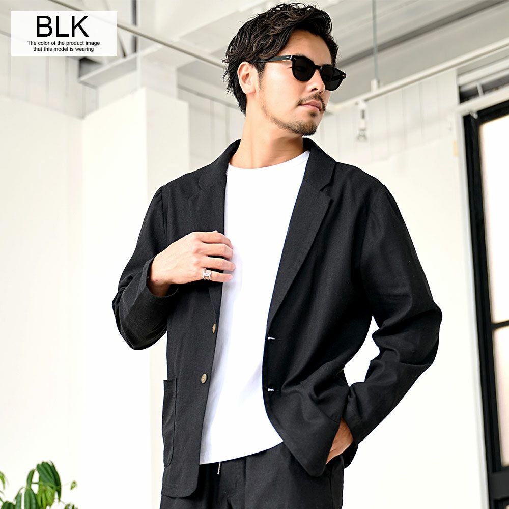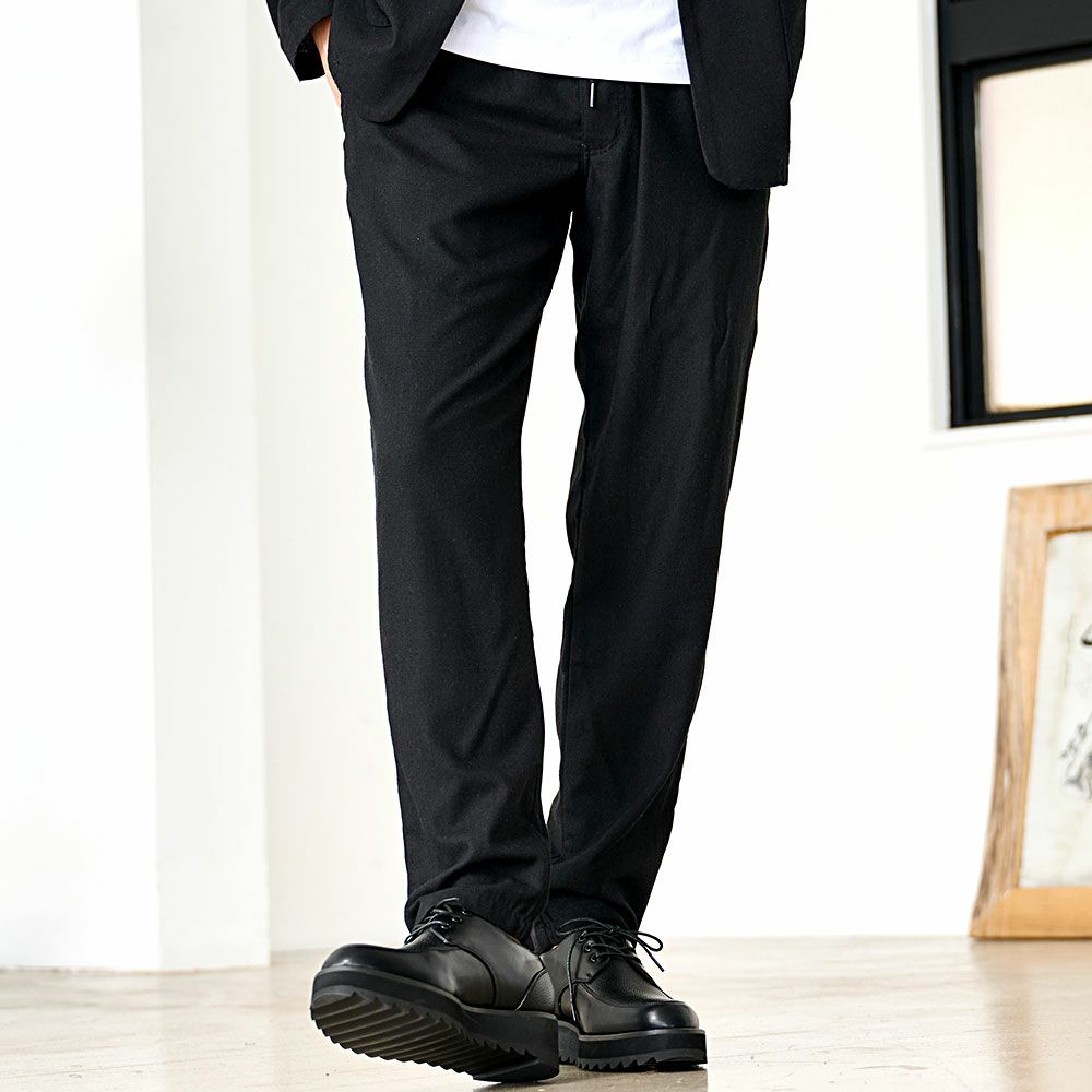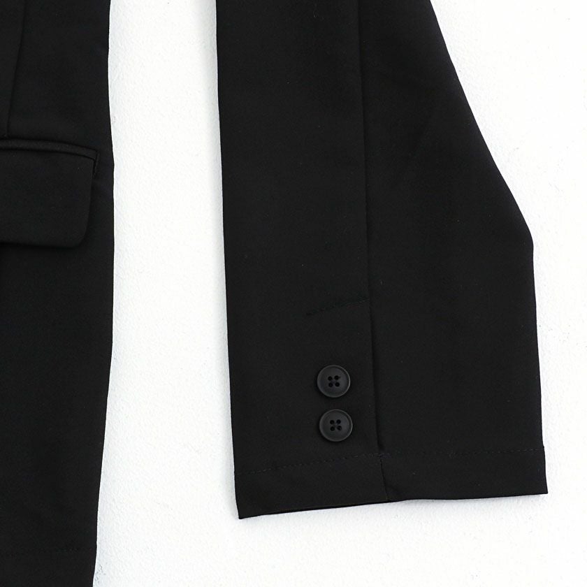 シンプルでベーシックなデザインのテーラードジャケットとイージーパンツの2点セット。