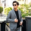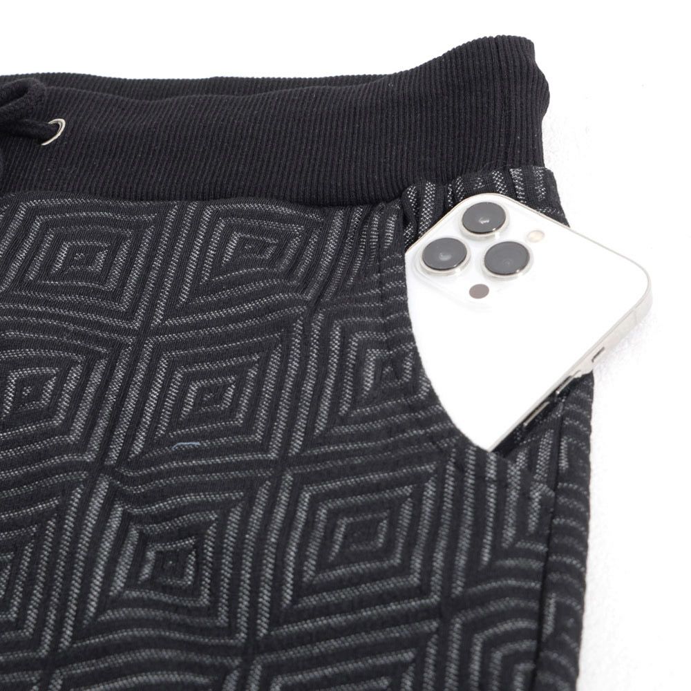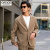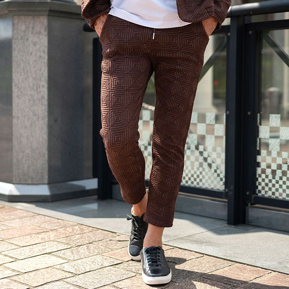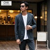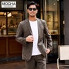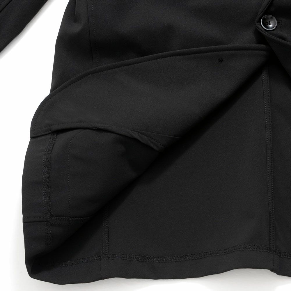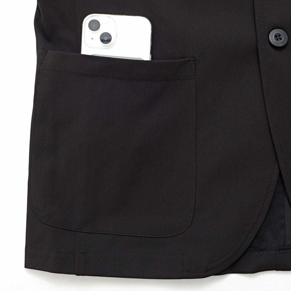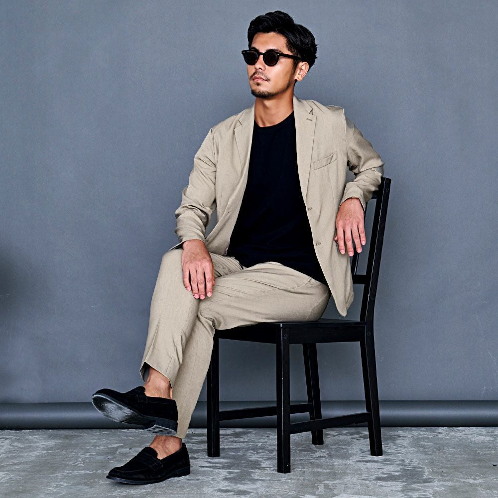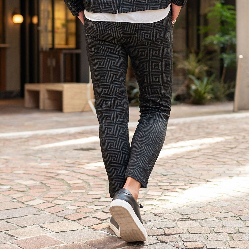 ポンチ素材を使用したテーラードジャケットとパンツのセットアップ。