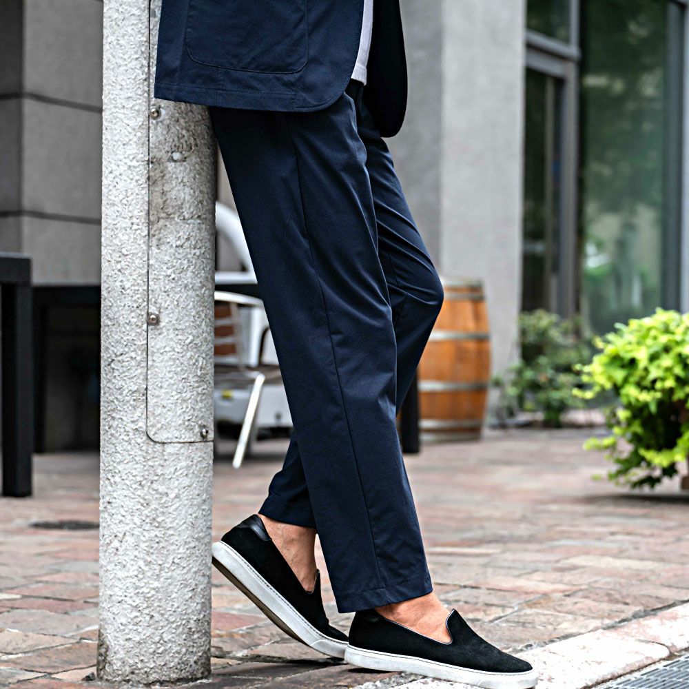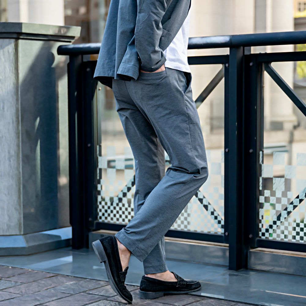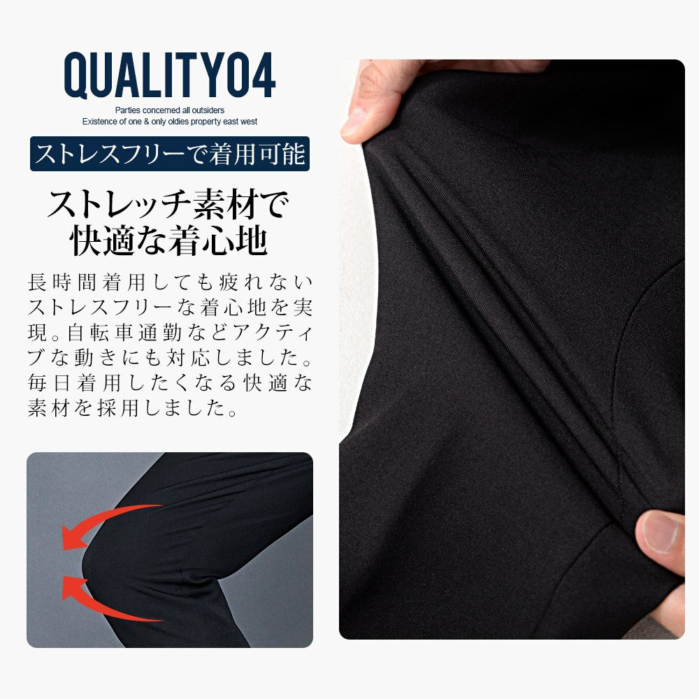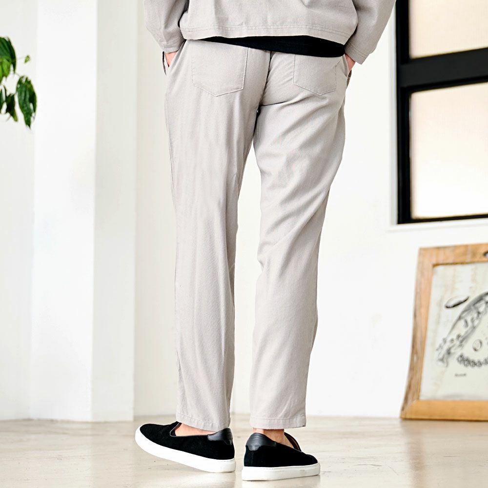 細身ながら伸縮性のある柔らかい素材を採用し、楽な着心地に仕上がりました。