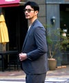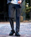 テーラードジャケットとテーパードパンツの洗練されたセットアップ。