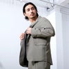 光沢感のある高級生地を使用し、上品なルックスと快適な着心地を両立させたテーラードジャケット&スラックスのセットアップ。