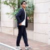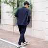 上下セットでの着用はもちろん、ジャケット単品をシャツに合わせてビジネスカジュアルに、パンツ単品をTシャツと合わせてきれいめカジュアルにと幅広いコーディネートが可能。
