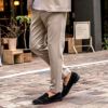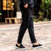 裾に向かって細くなるテーパードシルエットで、脚をすっきりと見せてくれます。