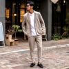 テーラードジャケットは裏地なし仕様で通気性抜群。