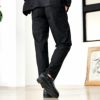 裾に向かって緩やかに細くなるテーパードシルエットで、脚をすっきりと見せてくれます。