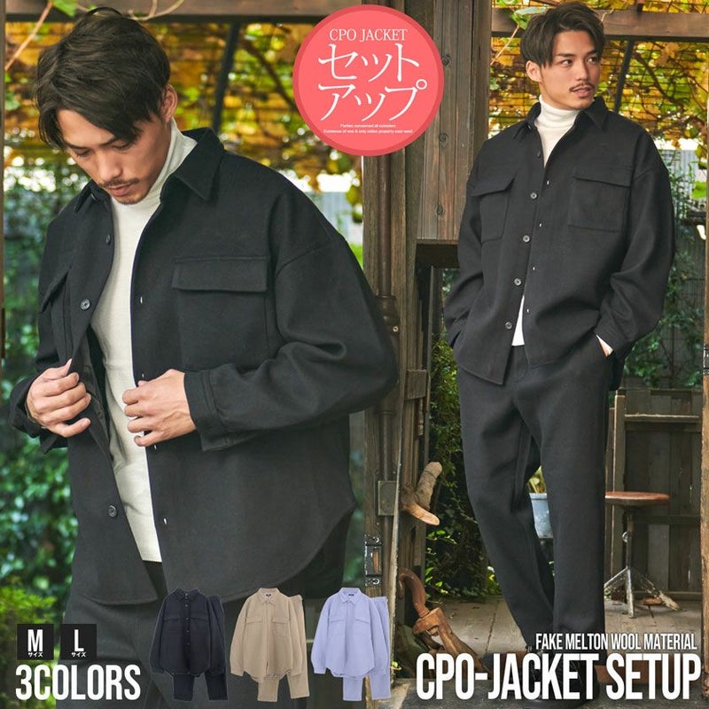 フェイクウール素材を使用したCPOジャケットとスラックスのセットアップ。