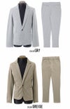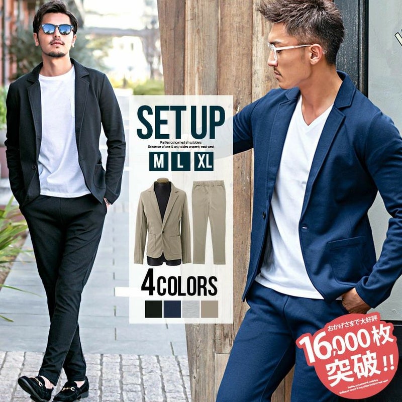 シンプルでベーシックなデザインのテーラードジャケットとイージーパンツの2点セット。