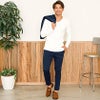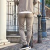 細身ながら伸縮性のある柔らかい素材を採用し、楽な着心地に仕上がりました。