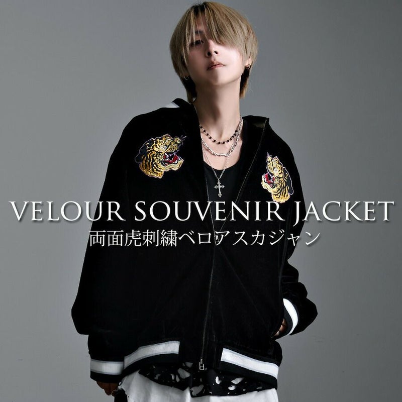 高級感あるベロア調で仕上げた両面刺繍スカジャン。