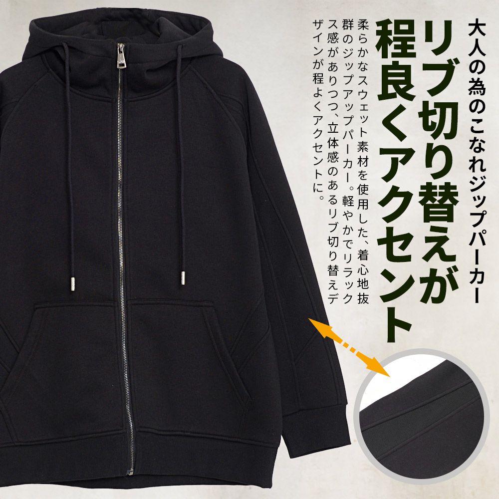 BENUSTA【ベヌスタ】袖リブ切り替えジップアップパーカー/全3色パーカー