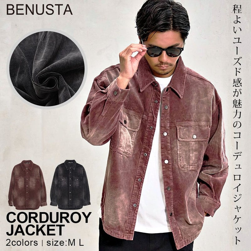 ムラ加工 コーデュロイジャケット メンズ ジャケット アウター ライトアウター レッド ブラック 秋 冬 秋冬 コーデュロイ素材 ヴィンテージ風 BENUSTA ベヌスタ カジュアル ストリート モード 大人 20代 30代 40代 男性 ファッション 羽織り ゆったり シンプル トレンドアイテム 上品 おしゃれ 新作 人気 定番アイテム 美シルエット 秋冬アウター 大人カジュアル モード系 韓国ファッション 韓国系 ストリートファッション キレイめ 大人コーデ シティスタイル 通勤 通学 休日 旅行 週末コーデ プレゼント ギフト