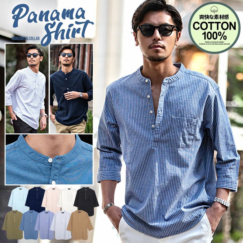 シャツ メンズ おしゃれ パナマシャツ 大人 7分袖 七分袖 7分丈 七分丈 パナマ織り 涼しい CavariA ブランド バンドカラー カプリシャツ ヘンリーネック コットン 大人 カジュアル 無地 ストライプ 白シャツ 服 父の日 春 夏 春服 夏服 ファッション ゴルフ ゴルフウェア ゴルフウエア ゴルフ用品 男性 男 父の日 父の日ギフト 父の日プレゼント 20代 30代 40代 メンズファッション 東京 プレゼント 誕生日 記念日 贈り物 ギフト