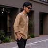 バンドカラーシャツとは、襟の形状が首元を包むように丸い帯(バンド)になっているシャツを指します。