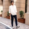 シャツ×ローファーで、上品なビジネスカジュアルに。