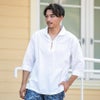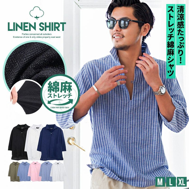 7分袖シャツ メンズ 綿麻 ストライプ カプリ ストレッチ トップス 七分袖 リネンシャツ コットン リネン 麻 プルオーバー ストライプ柄 M L ホワイト ベージュ ブルー ネイビー グレー カジュアル リゾート キレイめ リモートワーク 在宅勤務 ビジネス 父の日 父の日ギフト 父の日プレゼント 春 夏 秋 20代 30代 40代 メンズファッション 東京 プレゼント 誕生日 記念日 贈り物 ギフト