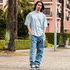 ワイドパンツやデニムパンツ、カーゴパンツなどと合わせて、ダボダボ系ストリートスタイルに。