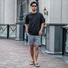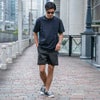 足元はスニーカーやスポーツサンダルと合わせることで、都会的なスポーツミックススタイルを簡単に演出できます。