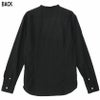 襟部分は首周りをぐるりと囲む低めの立ち襟がスッキリとした印象になるバンドカラー。
