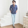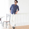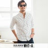 ※モデル画像は照明などの影響により実際の商品と異なる場合がございます。【七分袖シャツ 柄シャツ 水玉 ネイビー ホワイト 白 紺 M L XL カジュアル きれいめ 春 夏 2020】