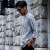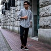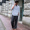 ナチュラルなラフさが魅力のシルエットながら、爽やかなストライプ柄でスタイリッシュな印象に。