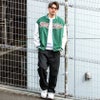 程良い光沢感が特徴的なポリエステル素材のカレッジスタジャン。