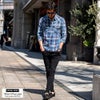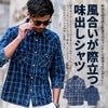 デニムのような風合いのインディゴ染めを施したチェックシャツ。