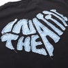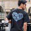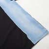 フロントはデニム生地で切り替え、バックはハート型ロゴパッチワークをデザインした半袖Tシャツ。