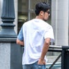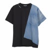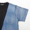 人気の切替デザインから登場したこちらのアイテムは、フロントに切り替えで施されたデニム生地が目を引く一枚。