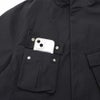 薄くて軽い生地で作られシャツに近いデザインで、マチのついたポケットが特徴的です。