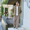 柔らかな素材と落ち着いたトーンのチェック柄が、羽織るだけでシンプルなシャツスタイルを格上げ。