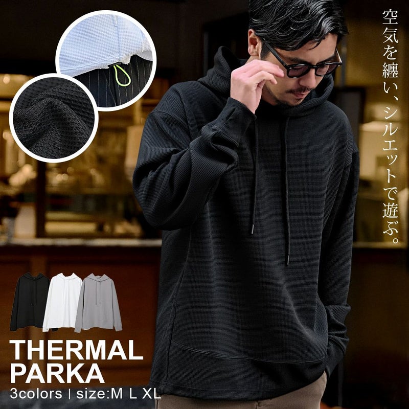 インナーとしても一枚着としても活躍する万能なプルオーバーパーカーです。