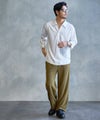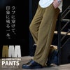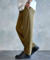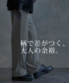 ゆったりとしたワイドストレートシルエットで、脚のラインを拾いにくく、リラックス感のある穿き心地。