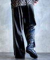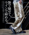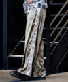 光沢感のあるサテン生地を使用し、高級感溢れる表情に仕上げたワイドパンツ。