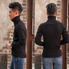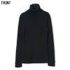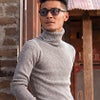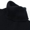 防寒性の高いタートルネックを採用し、全体をリブ編みでまとめたニットセーター。