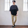 コットン100%の柔らかな質感が特徴のサマーニットに大胆な切替え編みが入る事で、爽やかな雰囲気をプラスしてくれます。