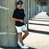 柔らかな裏毛スウェット素材を使用したハーフパンツ。