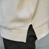 このトレーナーは、凸凹とした織り目が立体感を生み出すワッフル生地を使用しています。