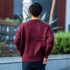 首元は襟のあるシャツやハイネックとも重ね着しやすいクルーネック。