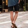 シルエットは足回りに適度なゆとりがある膝上レングス。