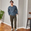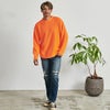 首元は襟のあるシャツやハイネックTとも重ね着しやすいクルーネック。