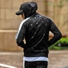 丈夫で滑らかな質感のポンチ素材を採用したジップアップパーカー。