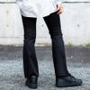 脚のラインをきれいに見せてくれる裾の広がったフレアデニムパンツ。