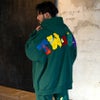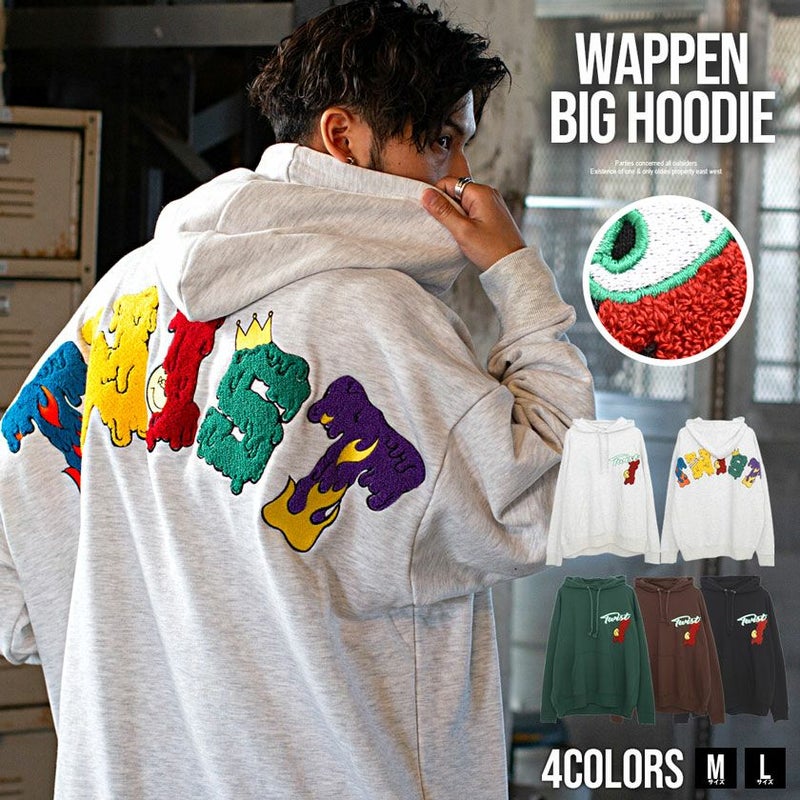 インパクト大のワッペン刺繍がポイントのスウェットパーカー。