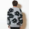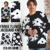 ジャガード編み×フリンジにより動きのある大きなフラワー柄が個性的なニット。