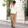 ウエストベルトには平ゴムとスピンドルを通していますのでサイズ調整しやすく、少しお尻廻りから渡りにかけてゆとりのあるサイズ感にしています。