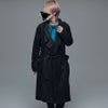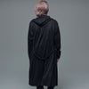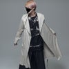 フェイクスエード素材を使ったフード付き変形ロングコートです。