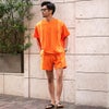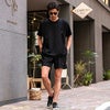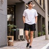 なめらかなタッチが特徴のポリエステル異素材切り替えが目を惹き、夏のショーツコーデにこなれた雰囲気を与えてくれます。