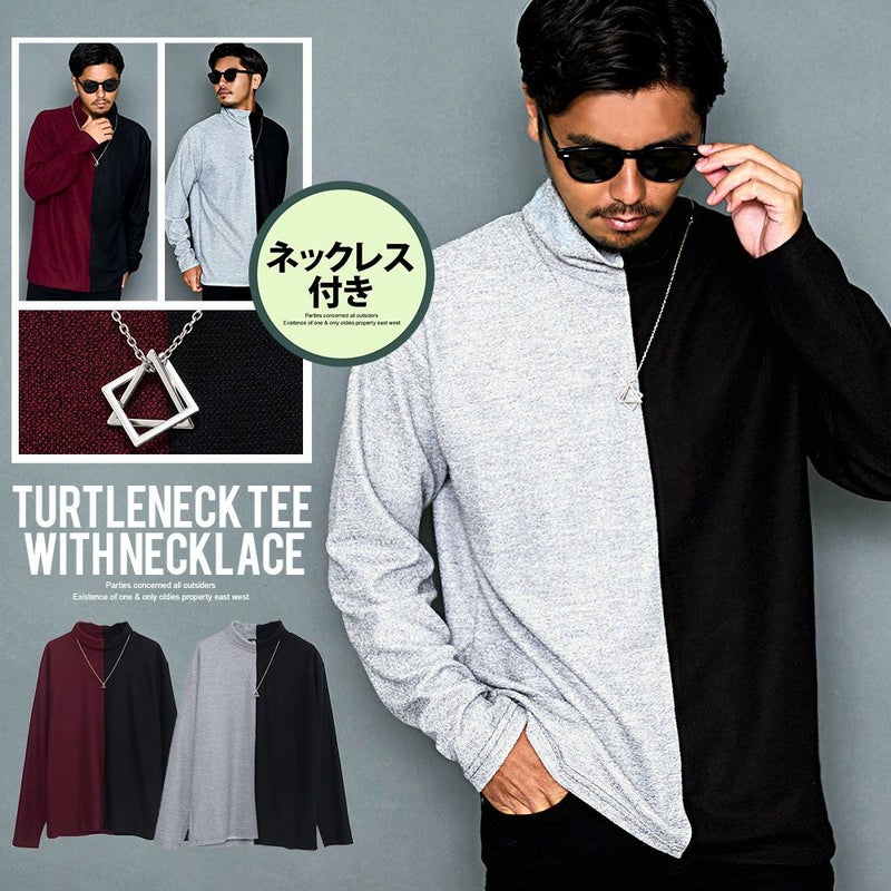 ニット メンズ セーター ブランド おしゃれ ネックレス付き 2点セット トップス カットソー インナー タートルネック 無地 配色 切り替え 切替 大きいサイズ ゆったり ストレッチ 伸縮性 ユニセックス レディース 男女兼用 ブラック ワイン 赤 黒 M L CavariA キャバリア 大人 上品 きれいめ モード カジュアル ストリート ストリート系 韓国 韓国系 韓国ファッション 下北沢 下北系 古着 古着系 90s 90年代 2000年代 Y2K 服 秋 冬 秋服 冬服 男性 男 父の日 父の日ギフト 父の日プレゼント 20代 30代 40代 ファッション メンズファッション 東京 プレゼント 誕生日 記念日 贈り物 ギフト