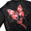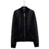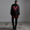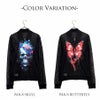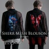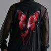 全体的に透け感のあるメッシュ生地で構成されたジップアップブルゾンとなり、バックにインパクトあるスカルやバタフライの大きなプリントデザインを入れてダークな雰囲気を演出。